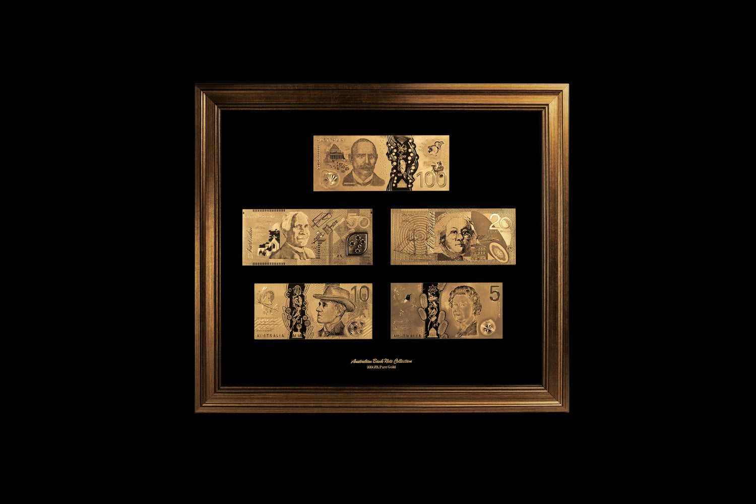 24 Carat Gold Australian 5 Banknote set $100, $50, $20, $10, $5