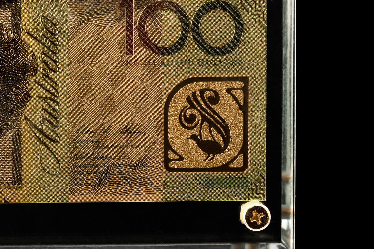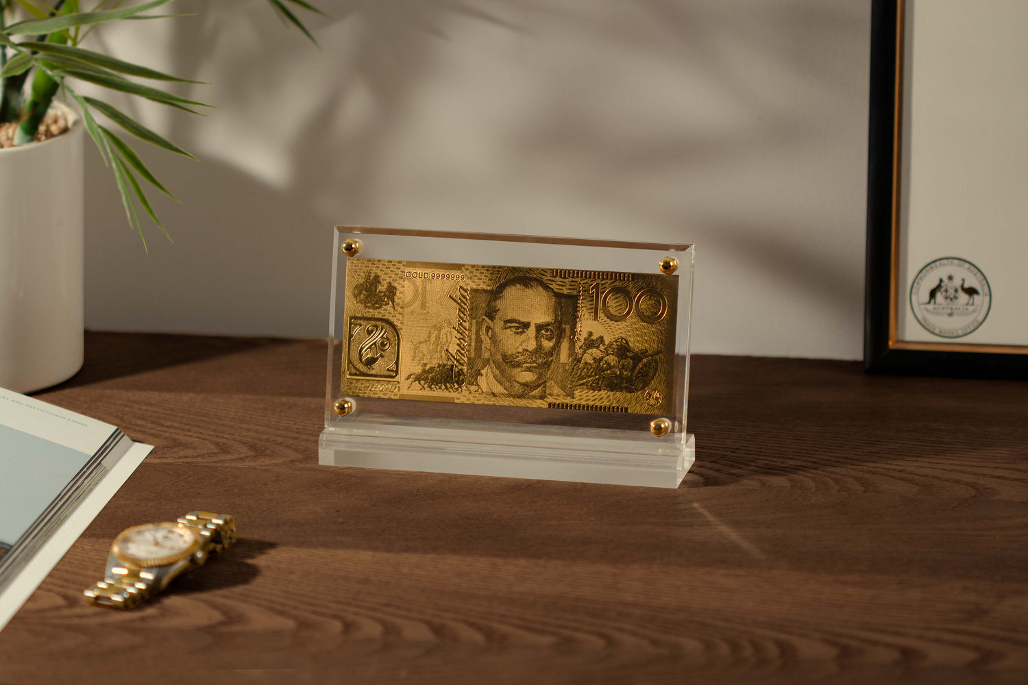 Replica bank notes meticulously replicated showcasing the beauty & detail of the original artwork in high contrast 24 carat gold.